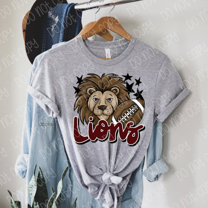 Lions mascot Burgandy DTF TRANSFER