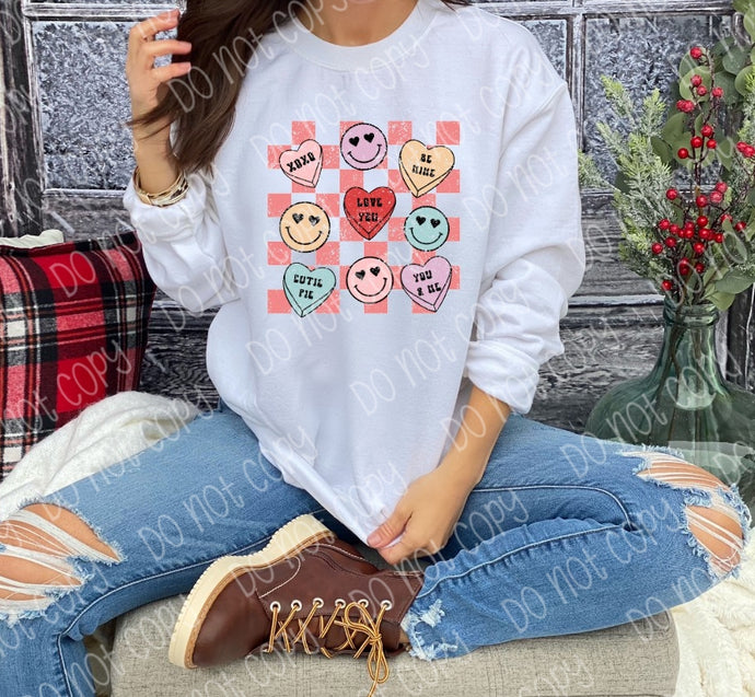 Valentine Candy Heart Smiles grungy DTF TRANSFER